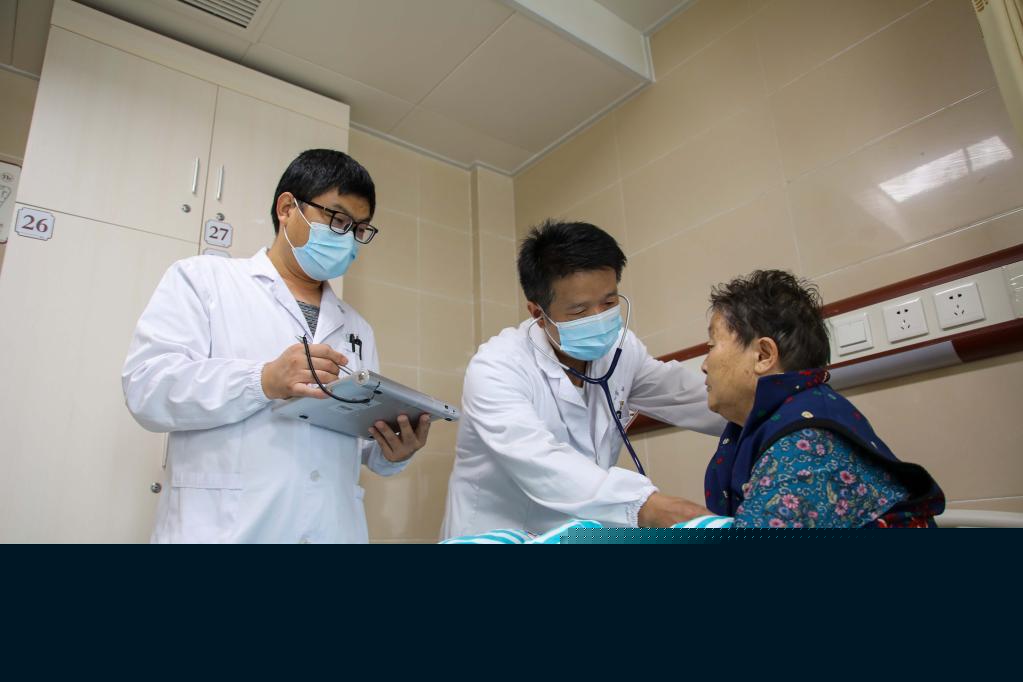 安徽省明光市中医院医生在病房查房(2022年10月2日摄)。新华社记者 曹力 摄