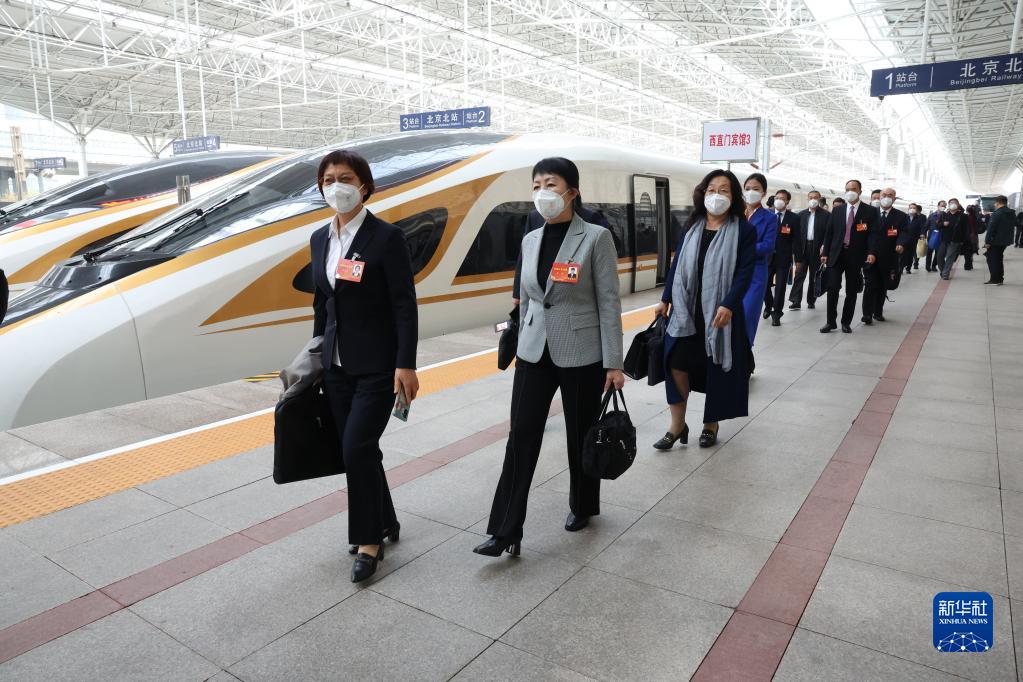10月13日,来自内蒙古自治区的党的二十大代表乘高铁抵达北京北站。这是当日首个抵京的京外代表团。新华社记者 张玉薇 摄