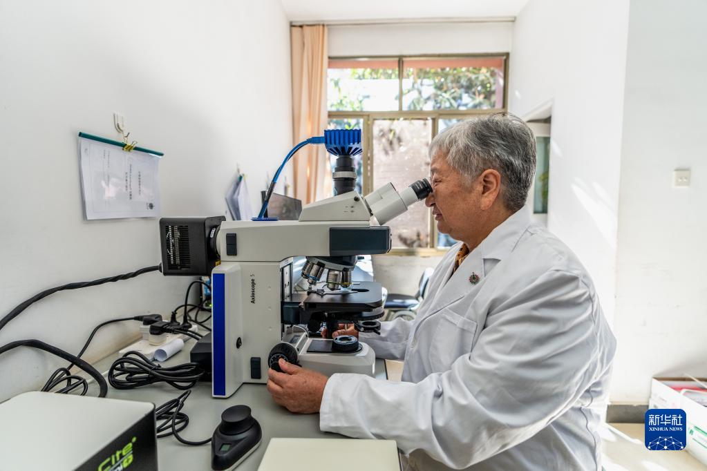11月22日,朱兆云在云南省药物研究所实验室观察药物显微组织特征。