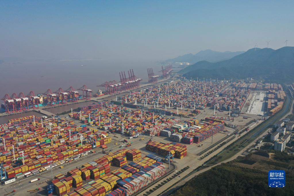 12月13日拍摄的浙江宁波舟山港穿山港区(无人机照片)。