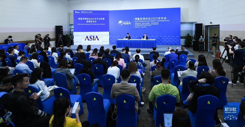 3月31日拍摄的博鳌亚洲论坛2023年年会闭幕新闻发布会现场。