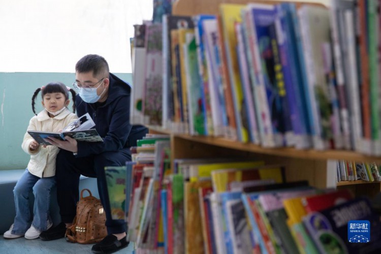 4月23日,在黑龙江省图书馆亲子共读阅览室,孩子和家长一起阅读书籍。