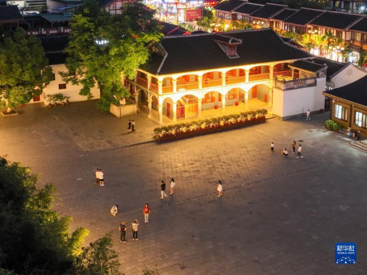 5月21日晚,游客在贵州省遵义会议会址参观。从5月20日起,遵义会议会址重启夜游模式。