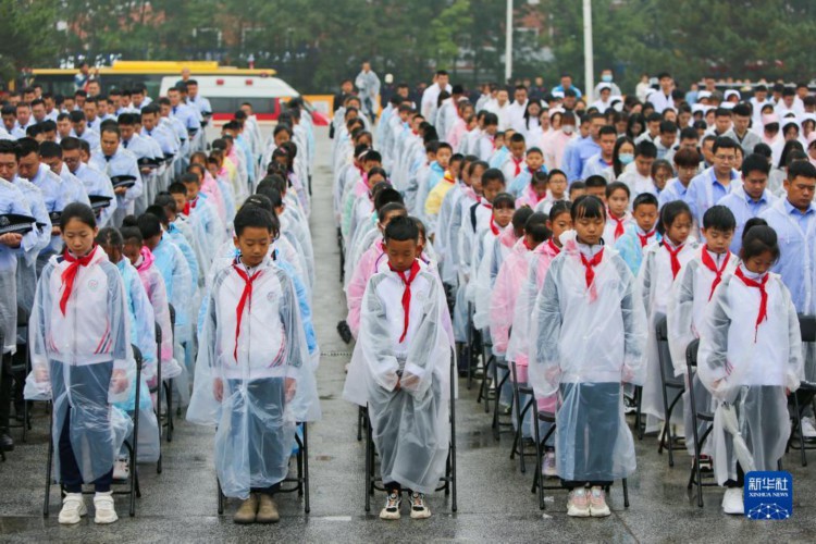 9月18日,青少年在侵华日军第七三一部队罪证陈列馆前默哀。