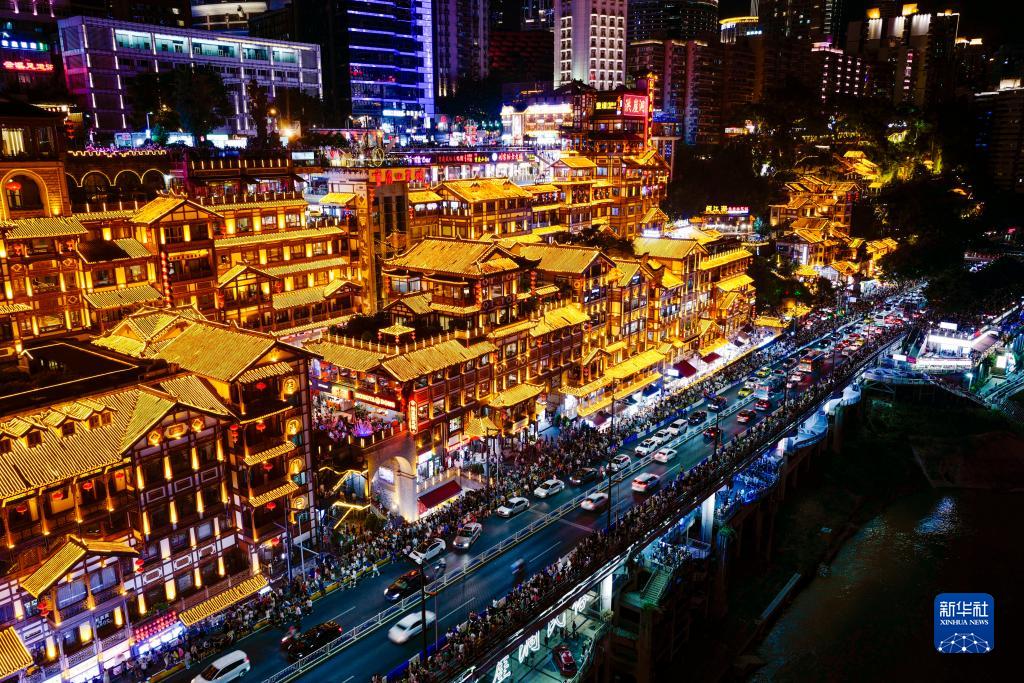 这是2023年8月3日拍摄的重庆洪崖洞夜市街区外景。