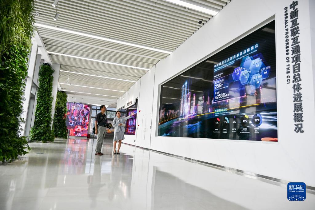 人们在位于重庆来福士的中新互联互通项目展厅内参观(2023年9月13日摄)。