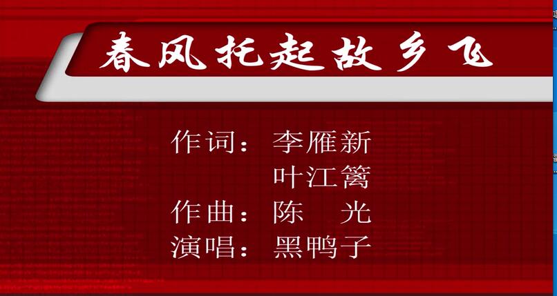 怀抱 歌词: 又一树桃花红了 春意枝头闹 又一轮明月圆了 多少代人梦也圆了 你坚实的脚步 追逐大潮 富春山居新图 我为你绘描 东海开渔忙 西湖喜相邀 一条小船驶出烟雨 那盏灯火照耀 生长在你的怀抱 我因为你而自豪 生长在你的怀抱 我因为你而自豪 自豪 又一片田野金黄 秋色正妖娆 又一座村庄笑了 绿水青山的你也笑了 你先行的队列 有我报到 共同富裕之路 我跟你奔跑 都市映霓虹 乡村更富饶 多少爱恋深情停靠 这边风景独好 依偎在祖国怀抱 你是母亲的骄傲 依偎在祖国的怀抱 你是母亲的骄傲 又一树桃花红了 又一轮明月圆了 又一片田野金黄 又一座村庄笑了 “海峡情”展播(41) 作品名称:春风托起故乡飞 作词:李雁新、叶江篱 作曲:陈光 演唱:黑鸭子 创作介绍:李雁新,湖南省岳阳市人,毕业于湖南师大中文系。30多次在全国性歌曲征集中获奖。《春风托起故乡飞》选取“故乡”为表达视角,以“新时代春风”为寓意,以发生在身边的“精准扶贫”“乡村振兴”“两岸互通”等伟大实践,既是引凤归巢的深情呼唤,也是共建家乡、奋进未来的新时代“强音”。