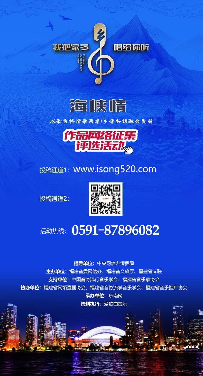海峡很浅,思念很深。 音乐是一艘在海峡两岸间往来穿梭的亲情之船:心同心梦同梦,何惧关山万千重。 音乐是一道连接海峡两岸骨肉同胞的彩虹之桥:曾相思会相逢,共看红日伴春风。 “我把家乡唱给你听·海峡情”海峡两岸音乐作品网络征集评选活动正在火热进行中,本期展播主打“两岸情”,许多音乐人用歌声表达出两岸一家亲的情感。