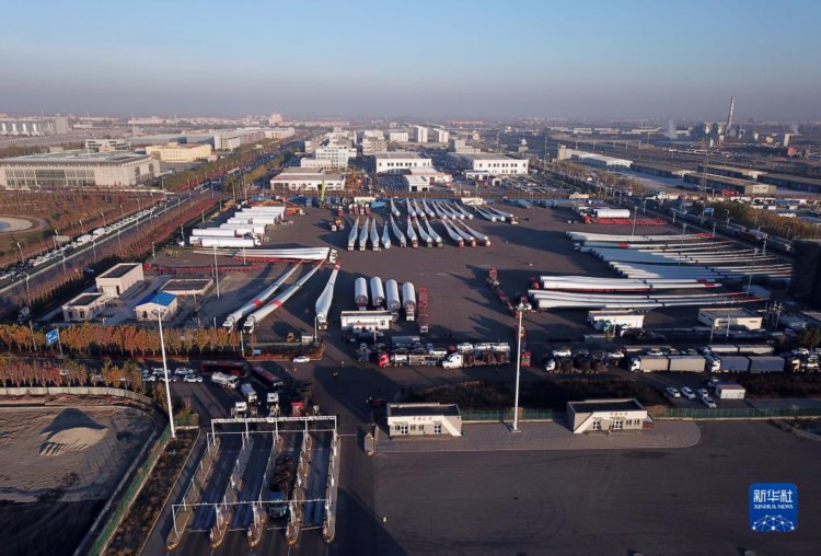 这是霍尔果斯公路口岸即将出境的货物和车辆(无人机照片,11月7日摄)。