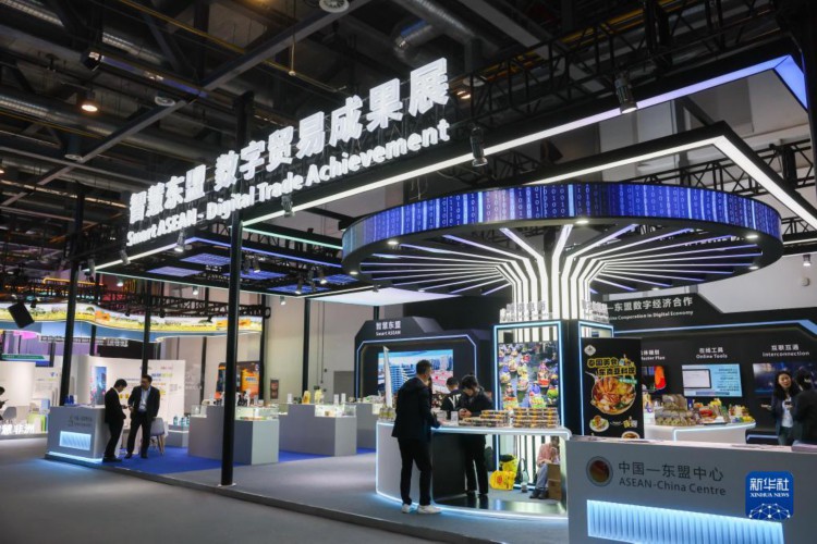 11月23日在第二届全球数字贸易博览会拍摄的智慧东盟数字贸易成果展。