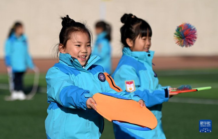 11月27日,西安市曲江第六小学学生在进行课间活动。