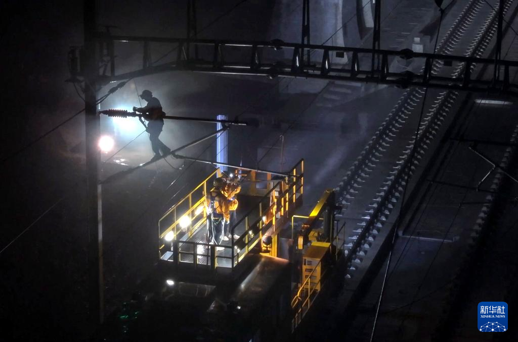 1月31日,检修工在贵南高铁九万大山四号隧道开展检修作业。 随着春运车次开行密度不断增加,负责贵南高铁南宁至荔波段巡查工作的中国铁路南宁局集团有限公司的检修工也增加了巡查频次,在午夜的“天窗”时间认真巡查,全力守护万千旅客的春运回家路。 线路全长482公里的贵南高铁是我国“八纵八横”高速铁路网的重要组成部分。 新华社记者 张爱林 摄pagebreak