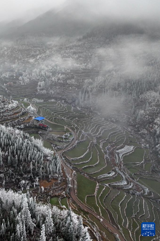 这是桂林市全州县蕉江瑶族乡大源村的雪景(无人机照片,2月28日摄)。 连日来,受强冷空气影响,广西桂林市全州县蕉江瑶族乡持续冰雪天气,瑶寨梯田被冰雪覆盖,美如画卷。 新华社记者 黄孝邦 摄pagebreak