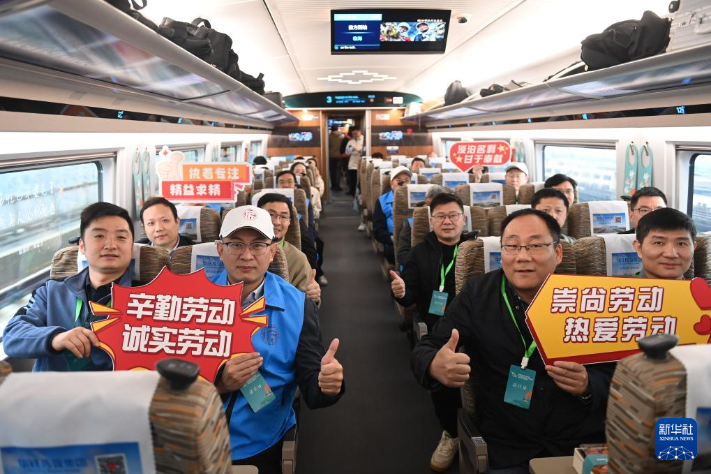 当日,全国首趟职工疗休养高铁专列从浙江杭州东站始发,浙江省劳模工匠、企业职工代表共400余人乘坐复兴号智能动车组经杭台高铁到达台州临海市。铁路部门将根据各方需求继续组织开行高铁专列,更好地服务职工群众,助力沿线文旅产业发展。