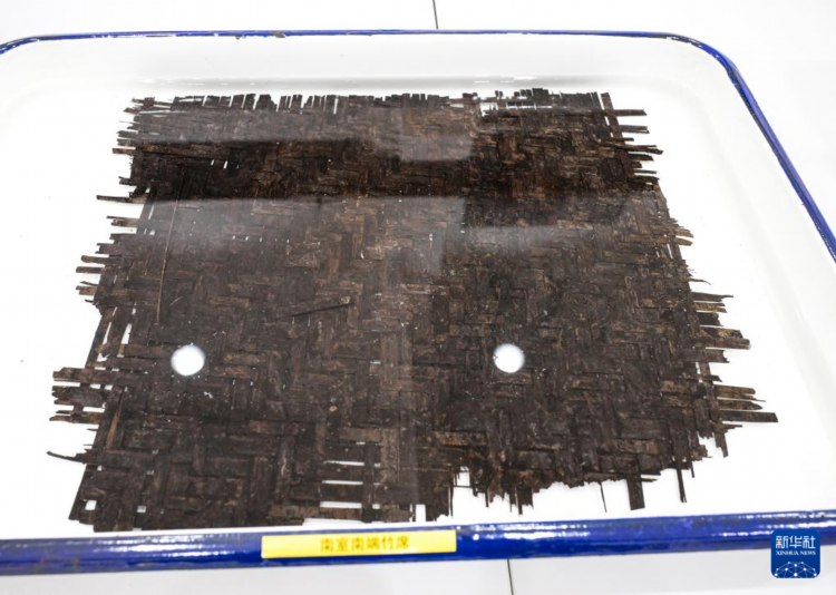 这是4月16日在武王墩墓考古实验室内拍摄的出土竹席。新华社记者 李贺 摄