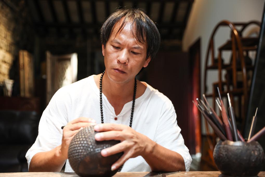 海南椰雕是以椰壳为原料的一种传统雕刻艺术,2008年被列入国家级非物质文化遗产名录。海南椰雕国家级非遗代表性传承人吴名驹初中时偶入椰雕工厂,被老艺人收为弟子,开始潜心学习椰雕技艺。33年来,他不断探索创新丰富椰雕工艺,同时还致力于椰雕文化的传承与发展,积极培养年轻一代椰雕艺术家,在多所高校开设相关课程,让这门艺术走向更广阔的舞台。
