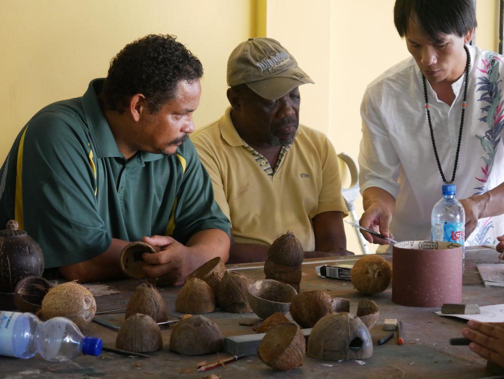 吴名驹在塞舌尔参加椰雕文化交流活动(资料照片)。