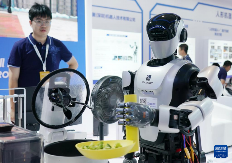 8月21日,一款人形机器人在2024世界机器人大会展示炒菜。