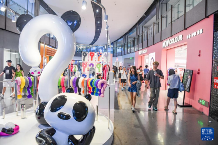 8月19日,游客在重庆市江北区观音桥商圈休闲。