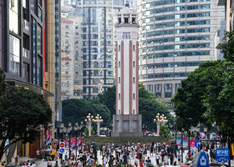 8月21日,游客在重庆市渝中区解放碑商圈休闲。