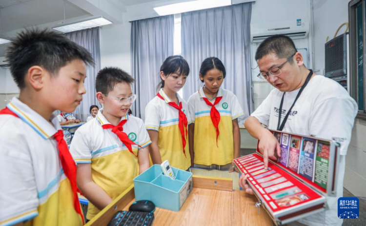 9月2日,东林镇司法所工作人员教东林二小学生认识毒品并讲解毒品的危害。