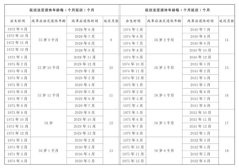2.原法定退休年龄五十五周岁的女职工延迟法定退休年龄对照表