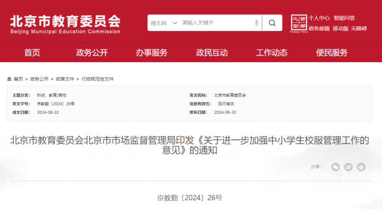 北京:中小学不得强制学生购买校服 可探索校服循环使用