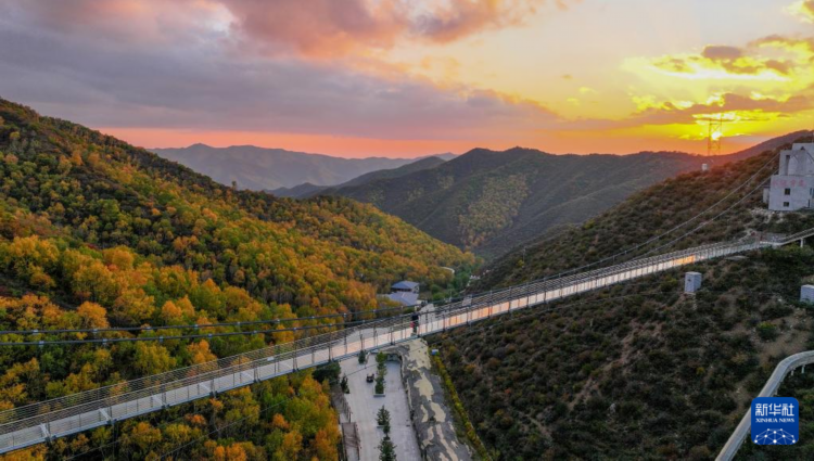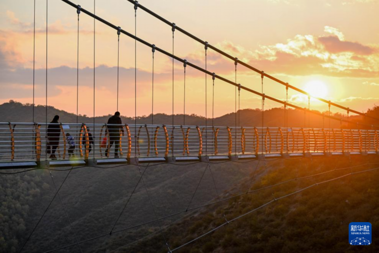 10月6日,游人在林胡古塞旅游区内的玻璃桥上行走。