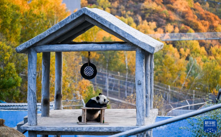 10月6日,一只大熊猫在林胡古塞动物园内休憩。
