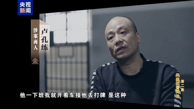 涉案商人 卢孔练:特别喜欢打牌,他一下班我就开着车去接他打牌,是这种。