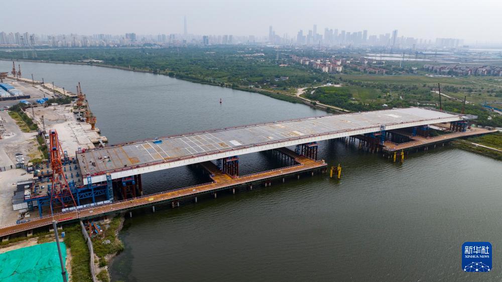 这是9月16日拍摄的天津市滨海新区西中环快速路跨海河桥工程建设现场(无人机照片)。