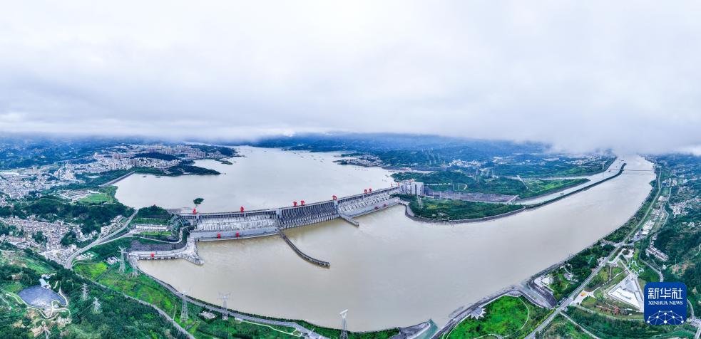 10月3日拍摄的三峡大坝(无人机全景照片)。