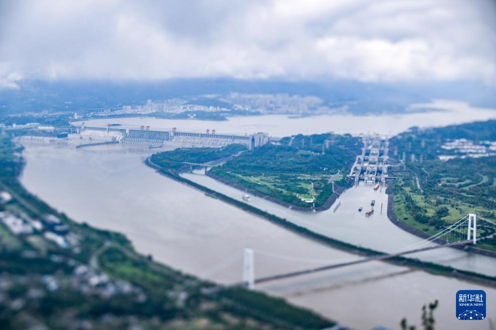 10月4日拍摄的三峡大坝和三峡大坝五级船闸(移轴镜头拍摄)。