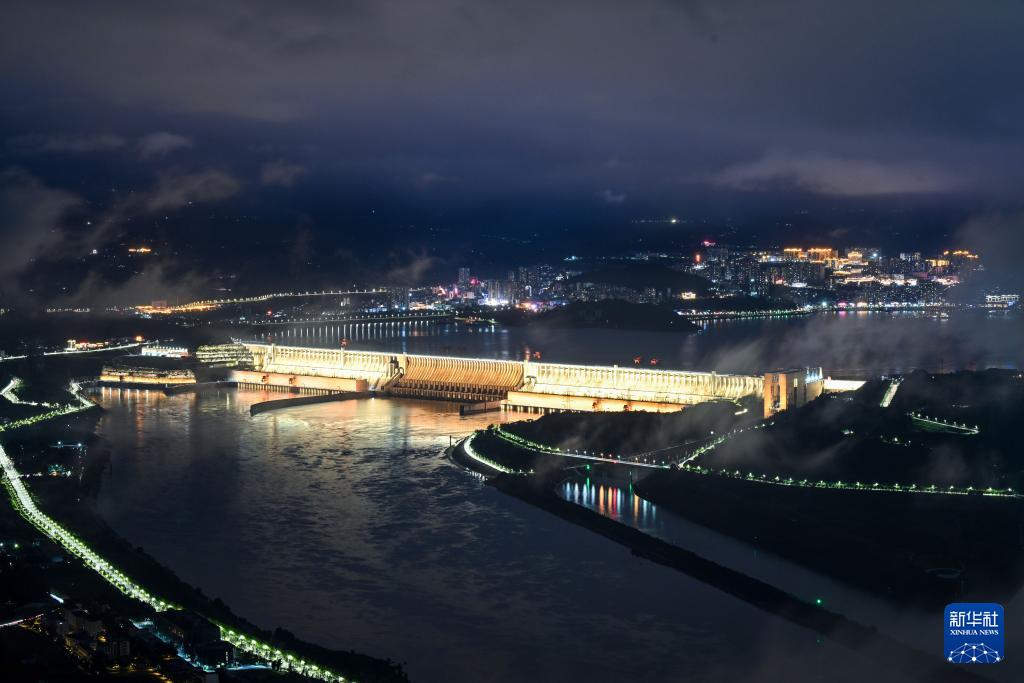 10月3日夜间拍摄的三峡大坝。