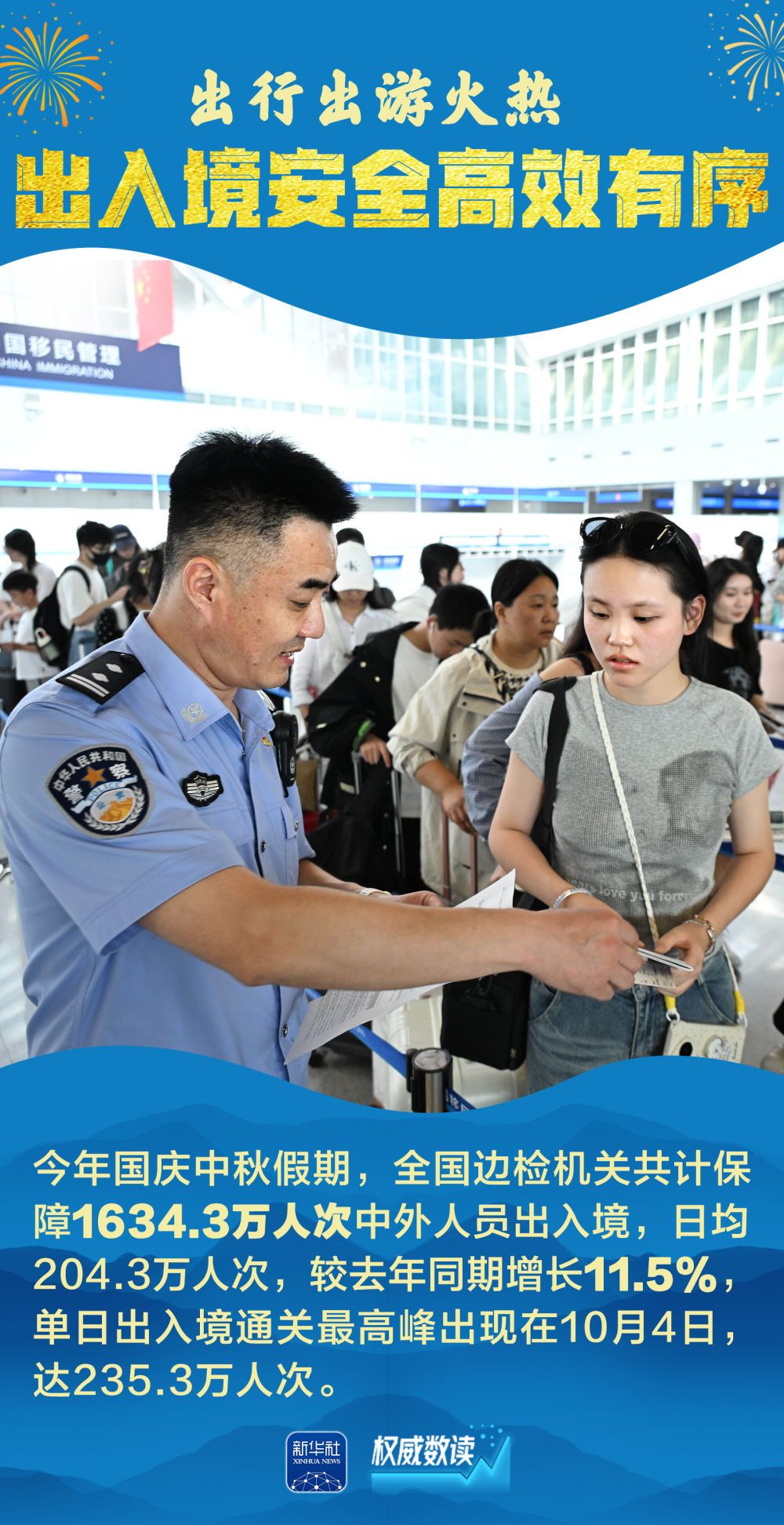 2025年国庆叠加中秋、家国同庆,交通出行、文化旅游、消费市场等都呈现火热场景。每一组跃动的数据,展示经济的奔腾活力;每一个热闹的场景,彰显发展的蓬勃生机。让我们跟随海报,一起感受这个火热奔腾、祥和喜庆的国庆中秋长假。