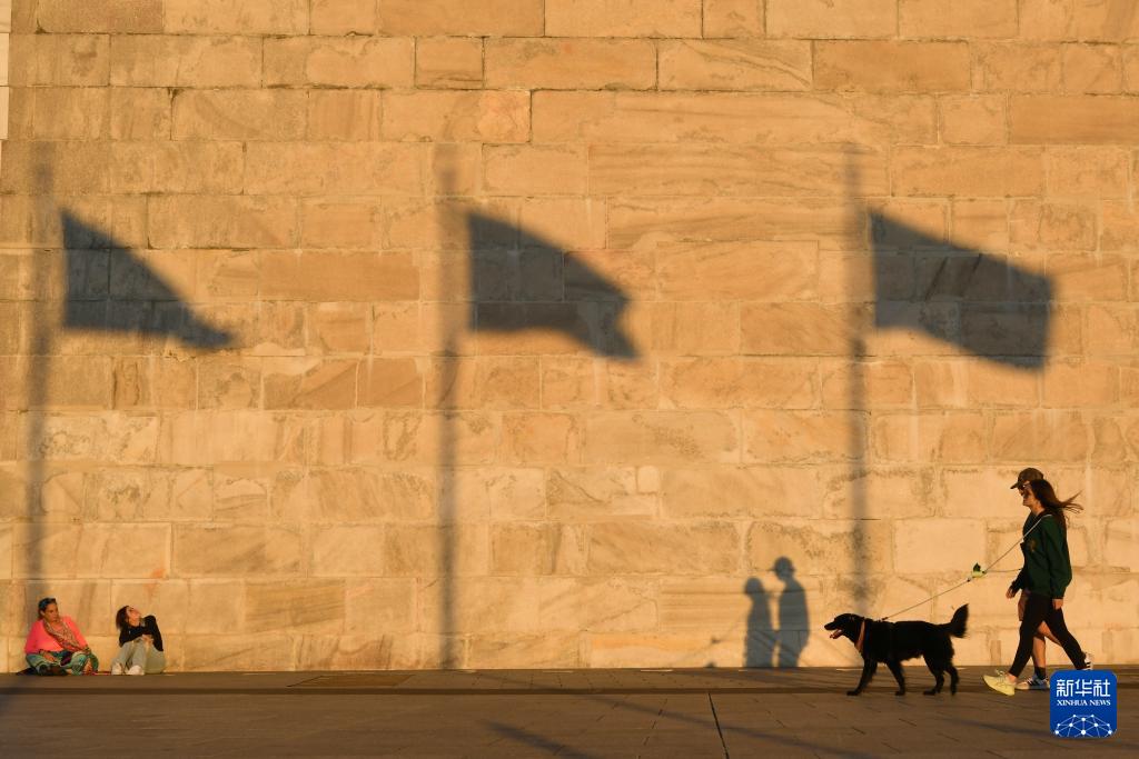 10月8日,在美国华盛顿,人们在华盛顿纪念碑前休闲。