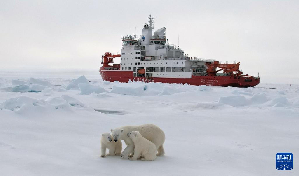 8月30日夜,在距离中国第15次北冰洋科学考察队长期冰站作业结束还剩一天时,一只北极熊妈妈带着两只熊宝宝出现在了考察队员搭乘的“雪龙2”号极地科考破冰船船边。