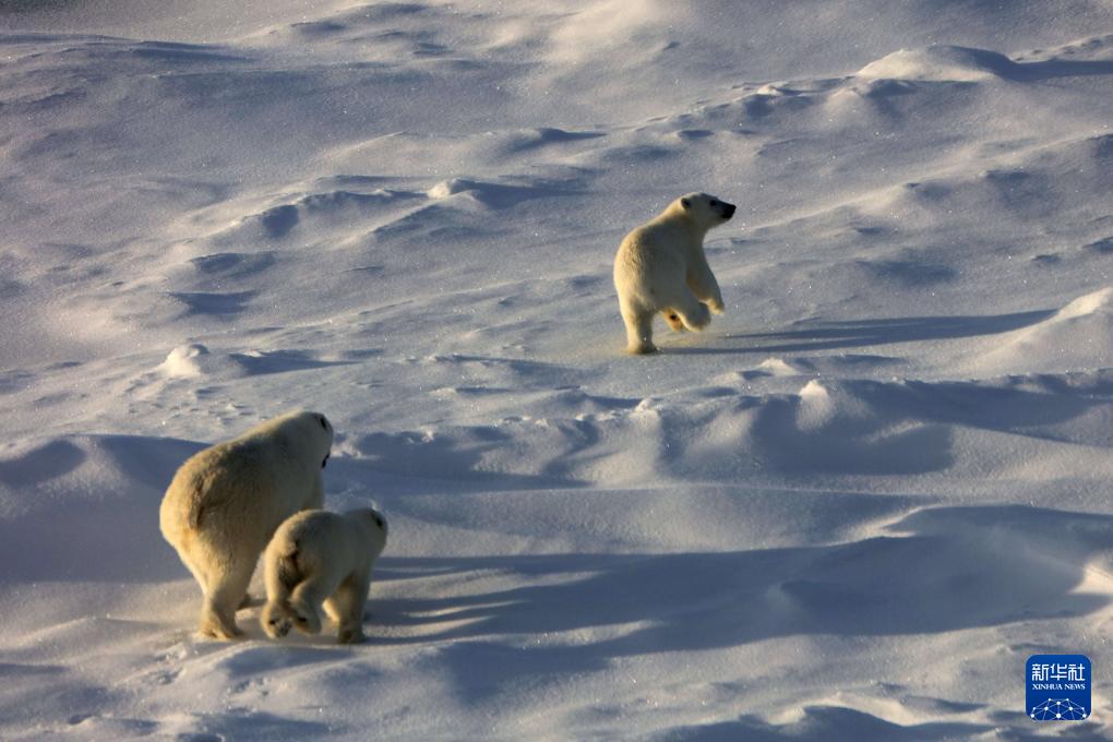 8月31日,北极熊妈妈和两只熊宝宝离开考察队冰上作业区。
