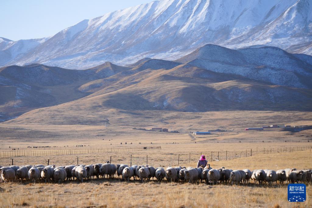 11月10日,仟户牧场的放牧员在青海省海北藏族自治州祁连县放牧。