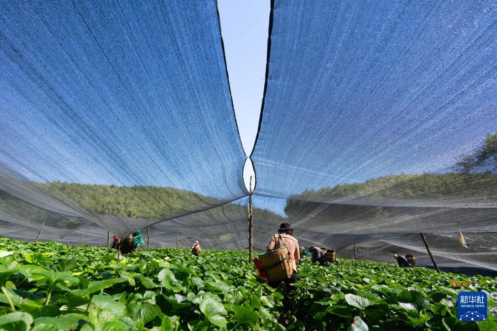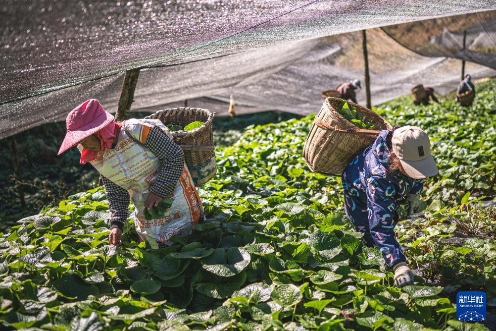 11月17日,农民在云南省保山市隆阳区杨柳白族彝族乡冷水村一处山葵种植基地内采摘山葵。