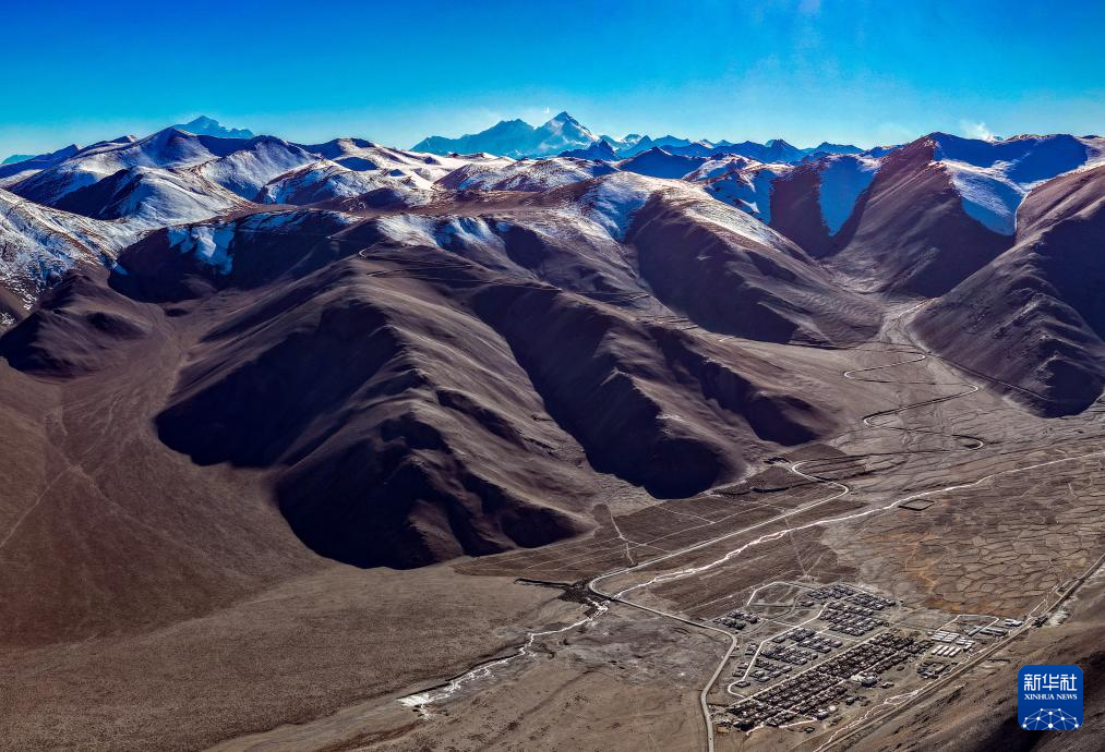 珠穆朗玛峰脚下的西藏定日县措果乡野江村,靠近珠峰方向为建成并交付群众使用的新房(11月12日摄,无人机照片)。