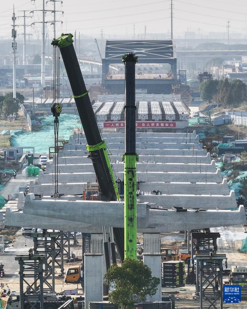 江苏无锡:312国道改扩建工程架梁忙