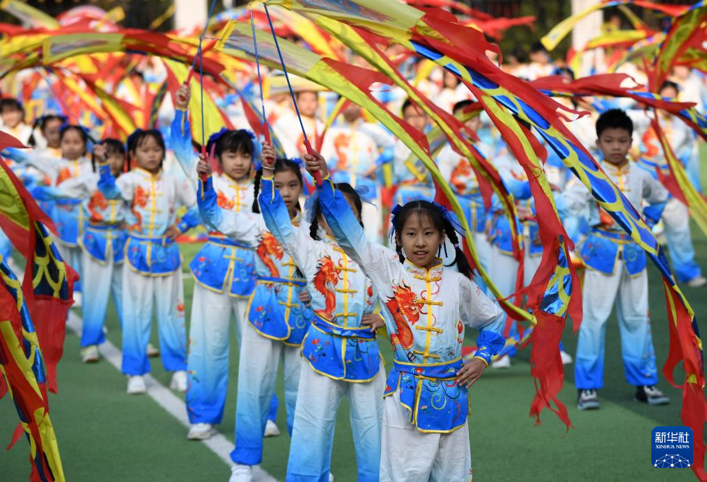 12月9日,在广西南宁市滨湖路小学教育集团滨湖校区,学生在“体育节”开幕式上表演团体操。