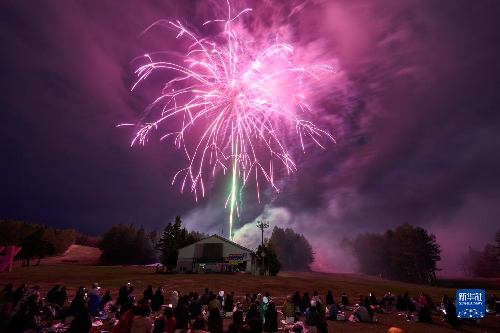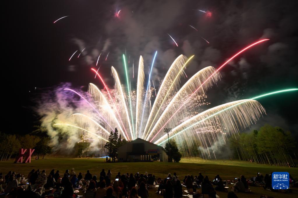 当日,“绝景花火”烟花大会在日本山梨县南都留郡鸣泽村举行。各色形态烟花绽放在富士山脚下,为观众带来绝美体验。
