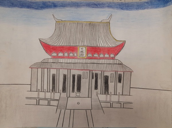 作品名称:《福州文庙》 作品类别:绘画 姓名:梁凯胜 年龄:15岁 国别(地区):马来西亚 选送单位:砂拉越古晋中学(国民型) 指导老师:张雅芳 创作缘由: 福州文庙,位于福建省福州市鼓楼区圣庙路北侧。这份绘画作品主要是本人对文庙的敬佩,这是因为文庙曾三次受到火焚,经历痛苦的挣扎后建立成了现今的福州文庙。其次,福州文庙也曾经是培养生徒的学官,培养出很多的人才,对社会给出了很大的贡献。因此,我对它印象特别深刻。