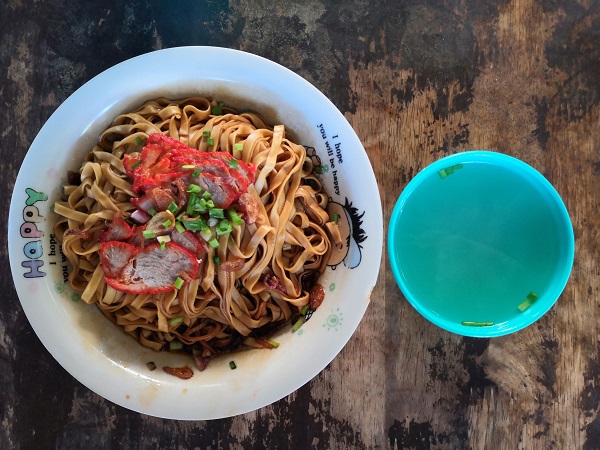 在砂拉越州另一城市诗巫,议福州人口居多,保留了许多传统福州美食,其中一道便是干盘面。干盘面的灵魂在于猪油和炸葱,趁热腾腾时把所有调味和配料与面条拌匀,葱香味扑鼻而来,多层次的味道。配上一碗附赠的青菜清汤就真的满足了!