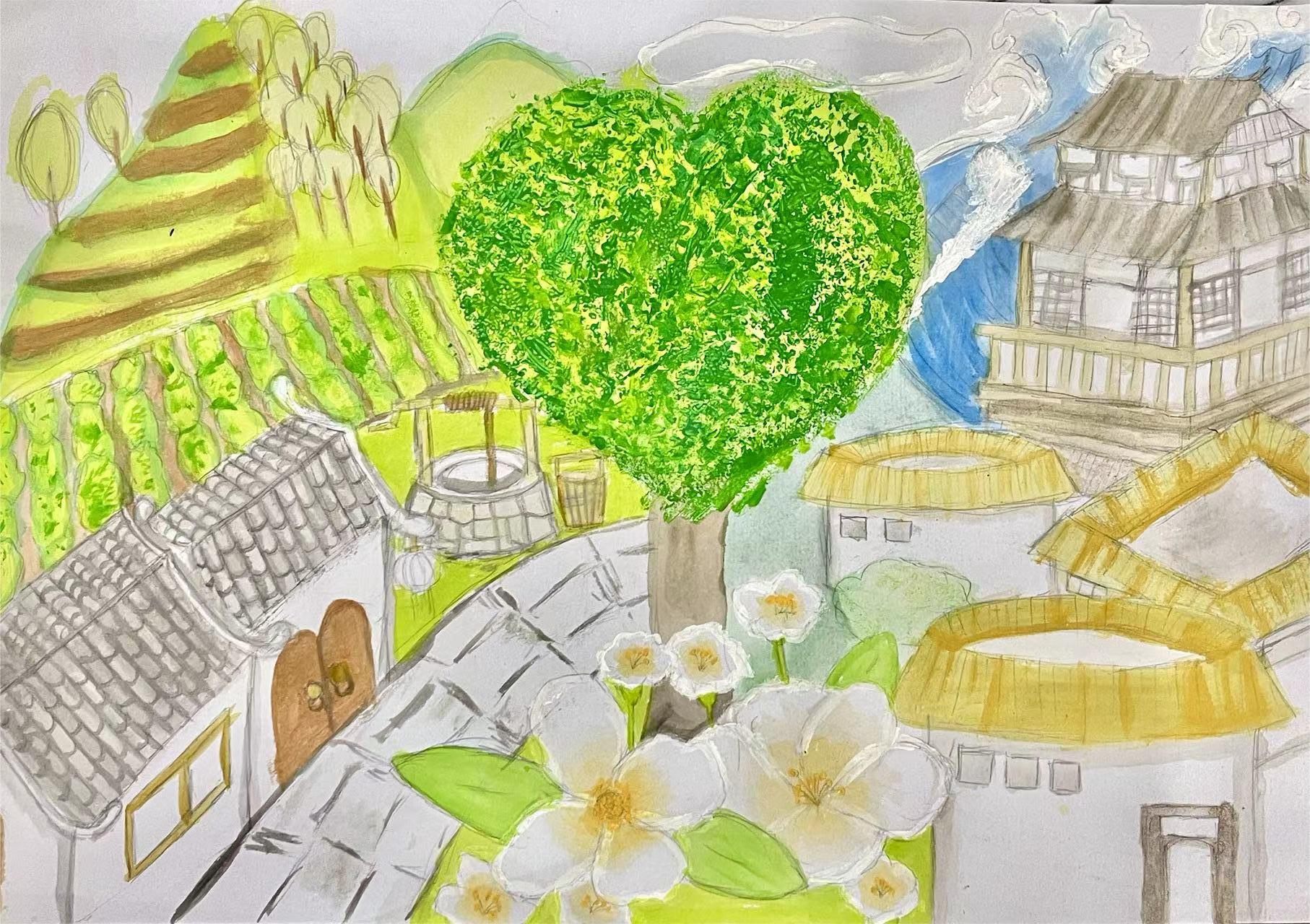 作品名称:《福地福景》 作品类别:绘画 姓名:陈一诺 年龄:15岁 国别(地区):中国香港 指导老师:陈一萌 创作缘由: 因为这次大赛的主题是印象福州,提到对福州的印象,就能想到福州的美景、标志性建筑物、福州的地理位置。福州是一个沿海城市,地形以山地丘陵为主,气候也是温暖湿润、四季常青,美丽的梯田就此出现在福州。福州也有茶文化,茶田也是福州无可缺失的一部分。福州也有许多古风建筑,就例如三坊七巷,之中令我印象最深刻的还是那个在巷中的爱心形榕树。当然也有代表福州的标志性建筑,那就是鼓楼,鼓楼的历史也十分悠久,承载着福州长久以来的福文化。福州还有沁人心脾的茉莉花,福州是中国最早种植茉莉花的地区,茉莉花身为福州市市花,十分惹人喜爱,花朵洁白玉润,香气清婉柔淑。这些美景美物都代表着美丽福州。 |