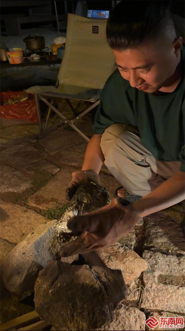 粉丝阿凡哥带科豆去露营,体验做纸包鸡。科豆供图