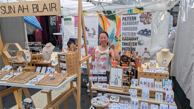 艾米·布莱尔(Amy Blair)出生在韩国,小时候被美国家庭收养,对艺术有着特别的兴趣,当天她带来数百件手工艺品参展,吸引大量观众驻足欣赏。