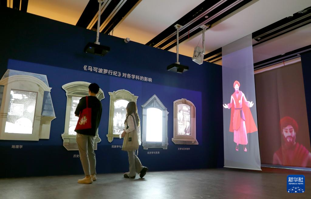 7月3日,参观者走在马可·波罗奇迹之旅展厅内。